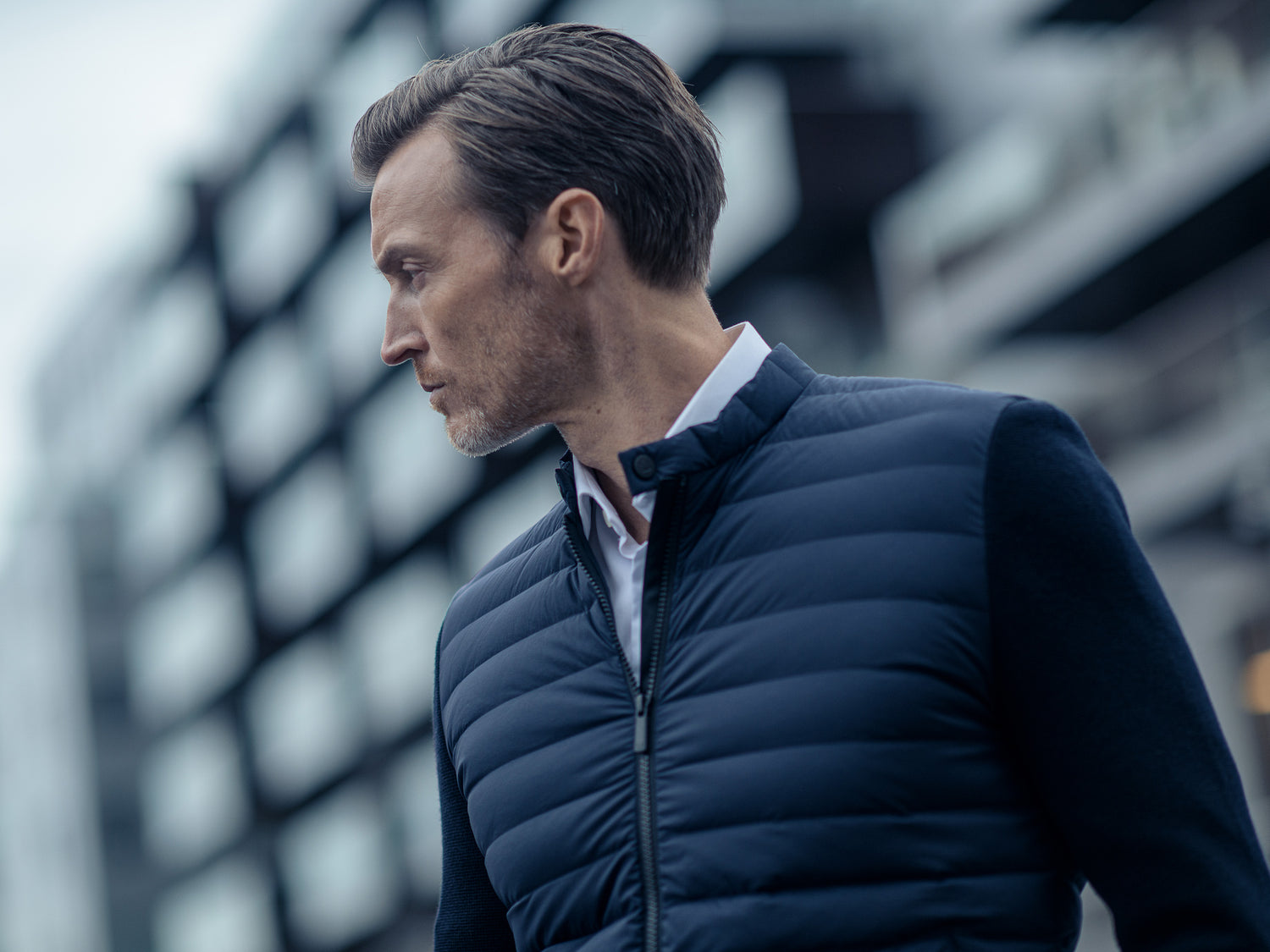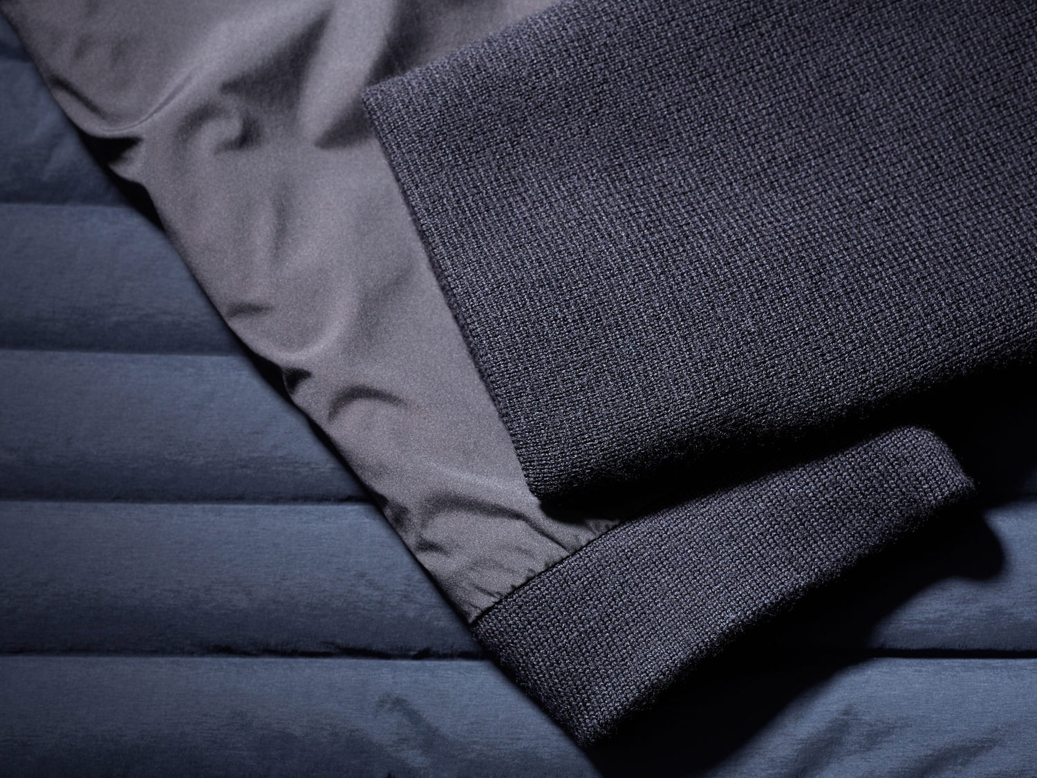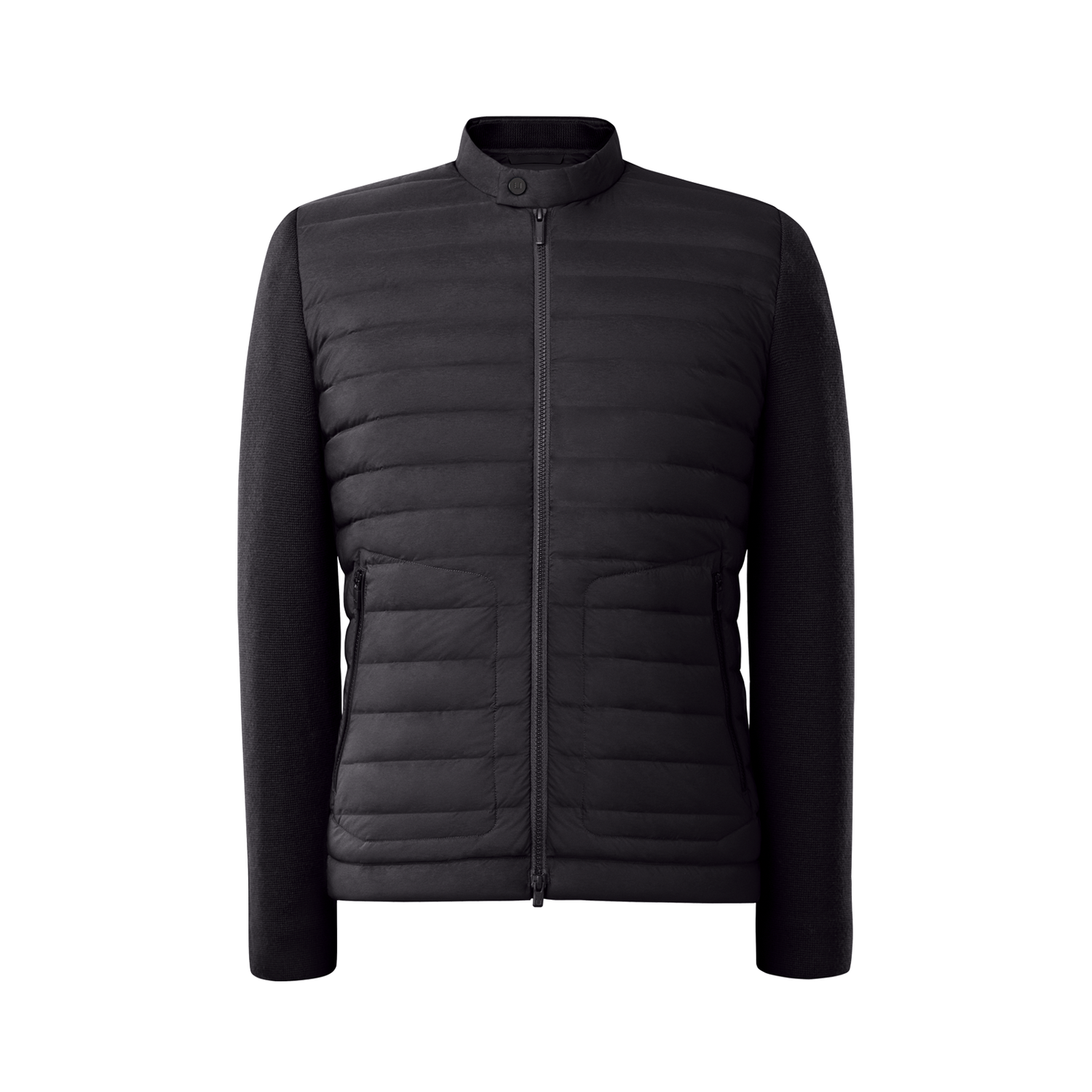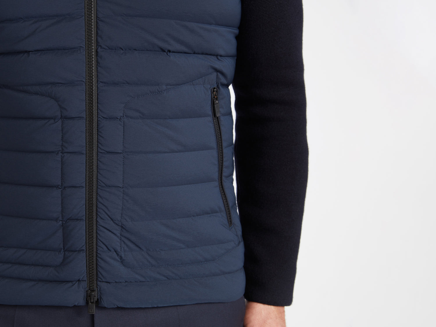 Ultra light summer down jacket, full stretch with our ultra sleek woven down channels, even more refined and with superfine Italian merino wool sleeves.