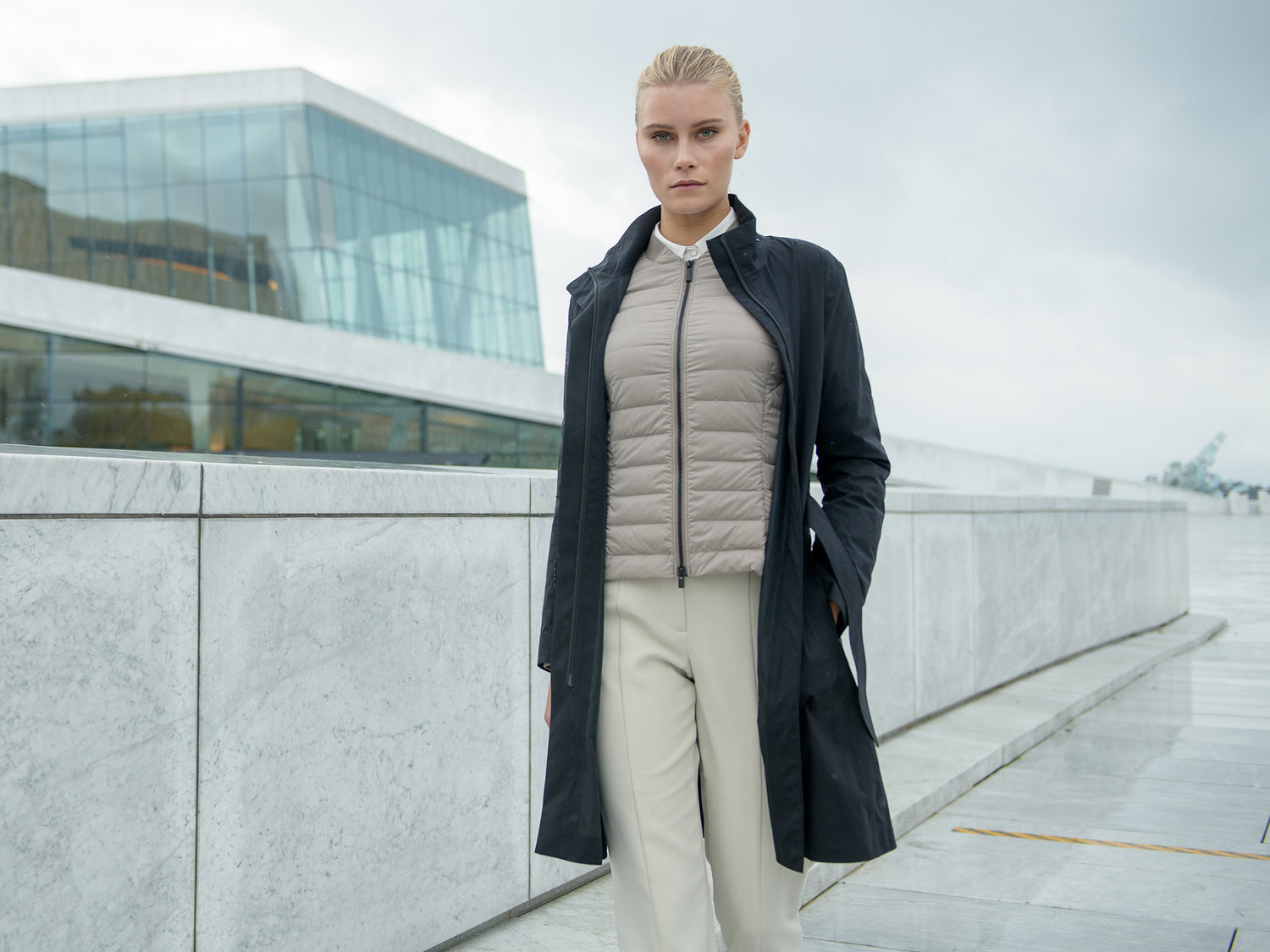 Ultra light down jacket, full stretch with our ultra sleek woven down channels, even more refined.