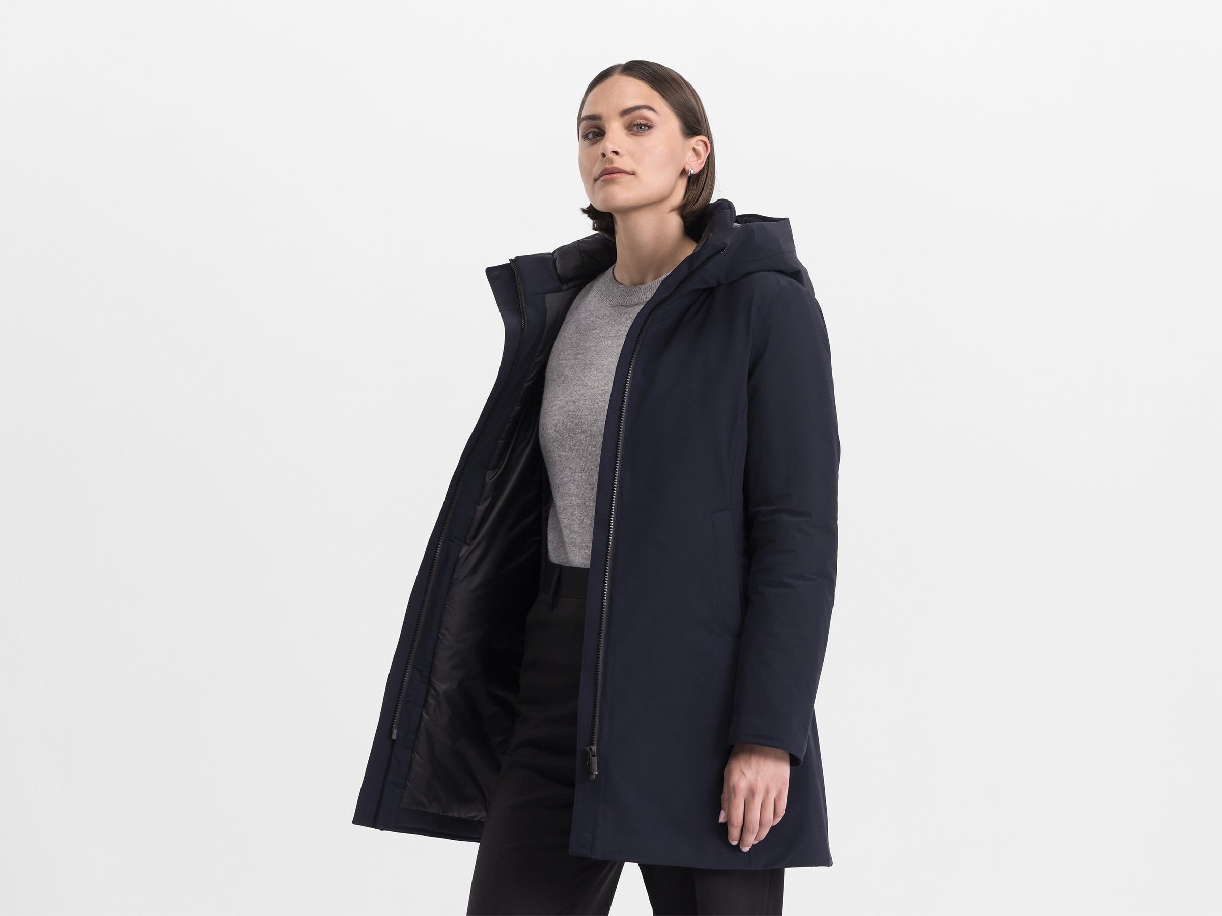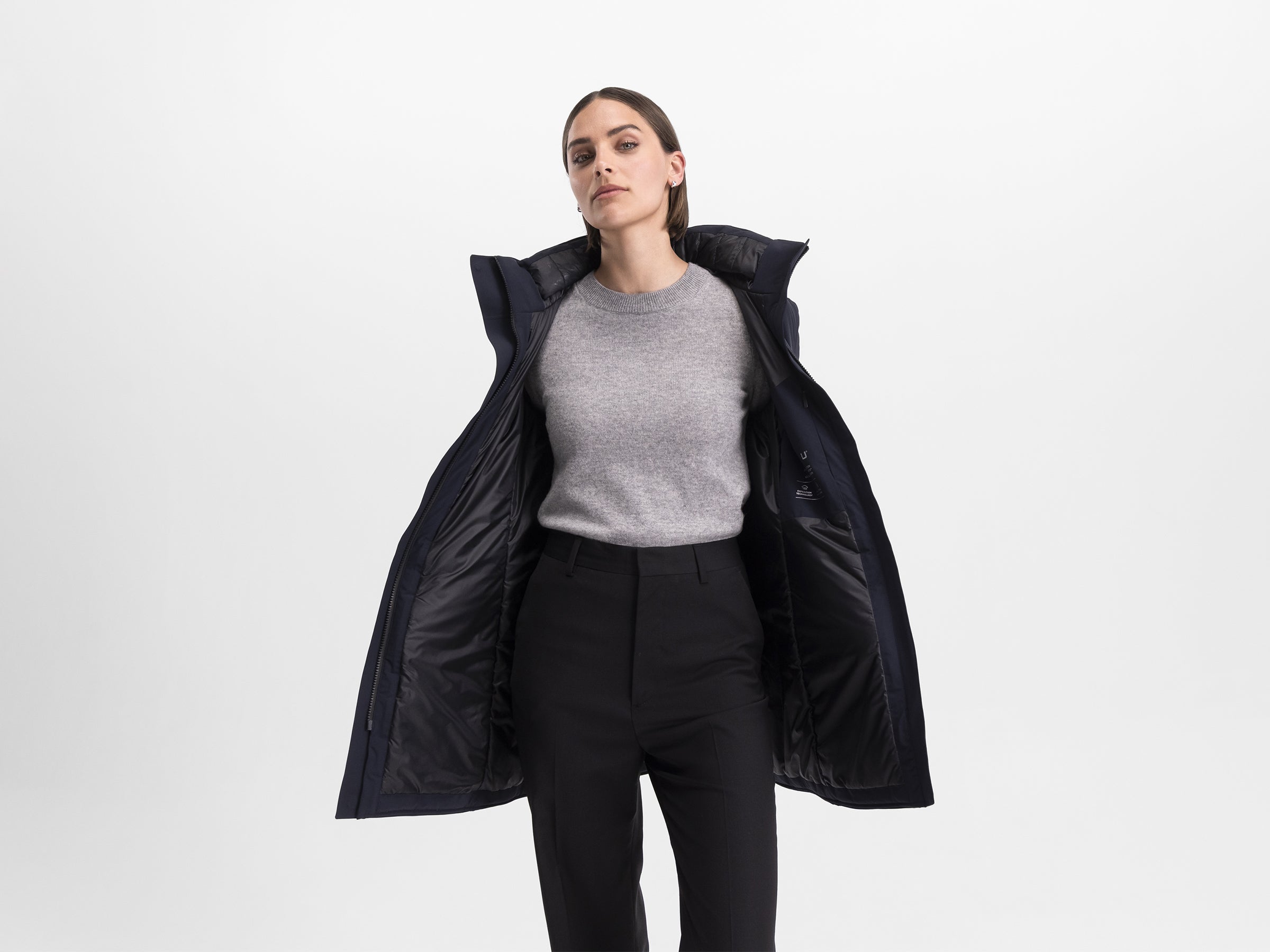 Highly technical winter parka with an exquisite feel. Ultra warm yet beautiful slim shape. Expedition quality thermal insulation keeps you perfectly warm with no bulk and minimal weight.