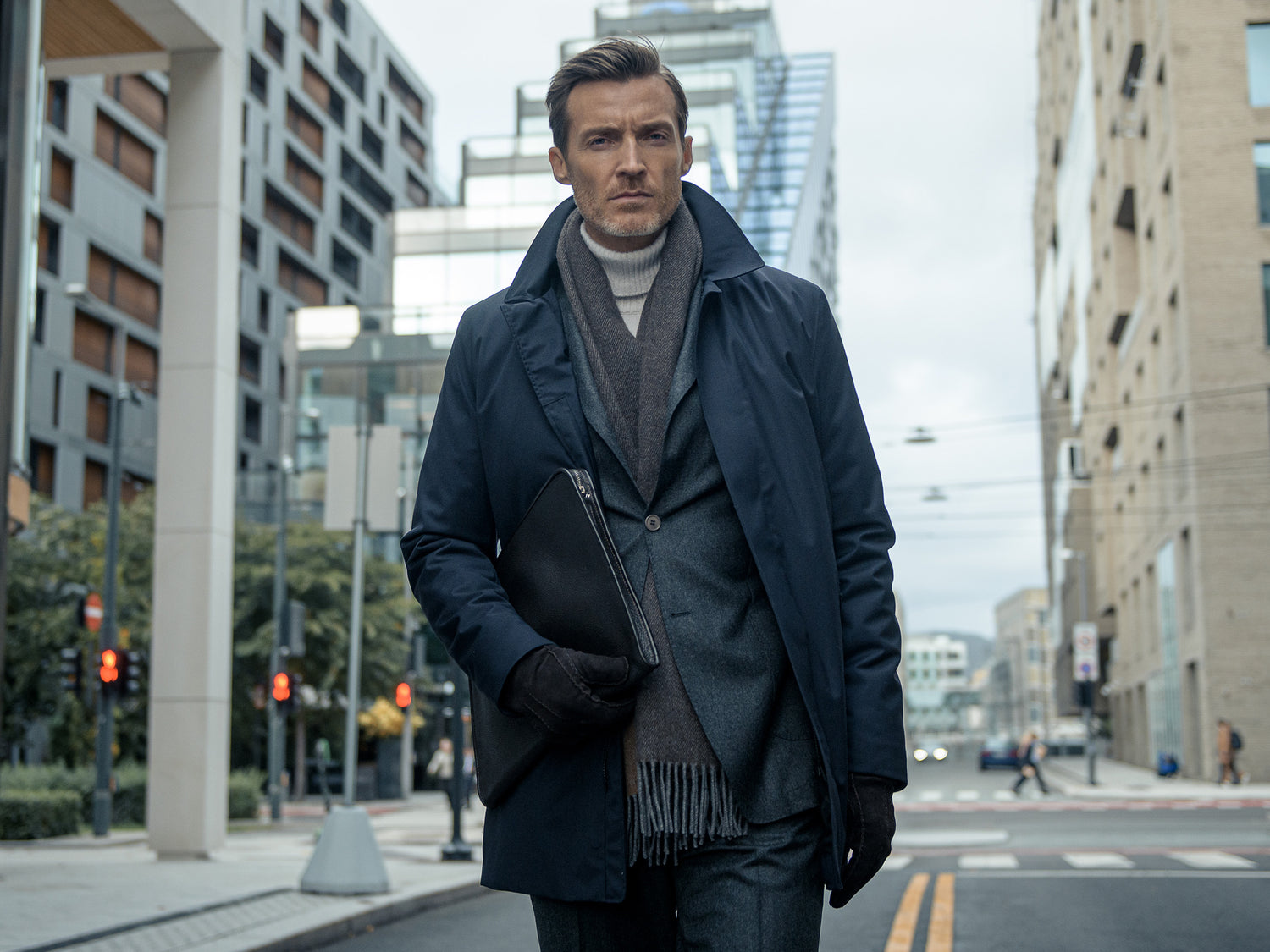 The extra luxurious edition of our most sold business coat. Perfect for spring, autumn and early winter. Full storm protection, breathable and light. Primaloft insulation. 16,5 Micron Merino Wool Woven for UBR in Italy. Japanese Bonded expedition quality membrane. Regular fit